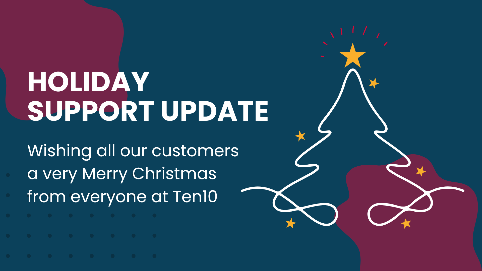 Holiday Support UpdateThe festive season is here, and we would ...